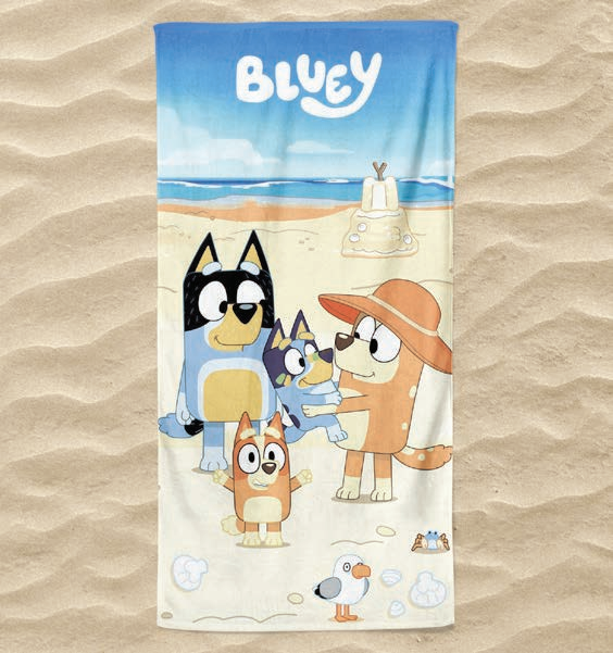 Strandlaken 70 x 140 cm. met 3D print Bluey
