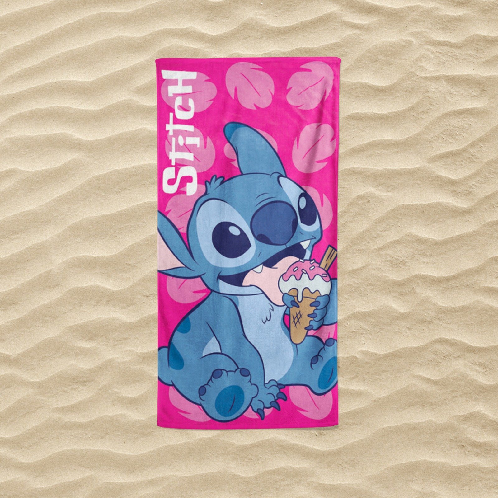 Strandlaken 70 x 140 cm. met 3D print Lilo & Stitch